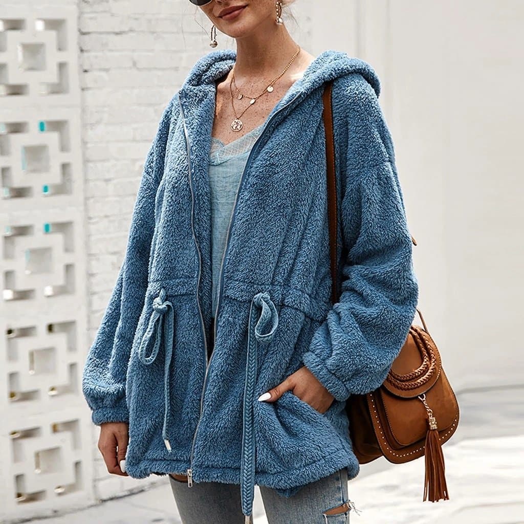 Perfekt zum Überziehen über Ihre Lieblings-T-Shirts, Pullover und Jeans, ist diese Teddy Bear Jacke eine vielseitige Ergänzung für jede Garderobe. Sie ist in einer Vielzahl von Größen erhältlich, um eine bequeme und schmeichelhafte Passform für alle zu gewährleisten. Ob Sie sich für ein entspanntes Café-Date fertig machen oder im Park spazieren gehen, unsere Teddy Bear Jacke ist Ihre Wahl, um bequem zu bleiben, ohne den Stil zu opfern.