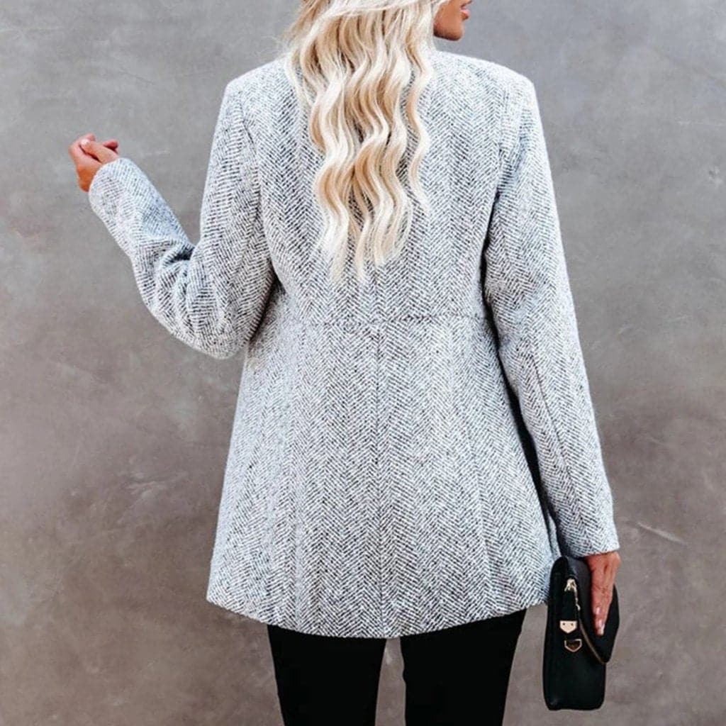 Der lässige Schnitt bietet Bewegungsfreiheit, ohne den eleganten und taillierten Look zu opfern, der diesen Mantel zu einer vielseitigen Ergänzung Ihrer Garderobe macht. Ob Sie ins Büro gehen oder ein Brunch am Wochenende genießen, der klassische Heather-Strickmantel passt perfekt zu allem, von lässiger Denim bis hin zu eleganter Kleidung.