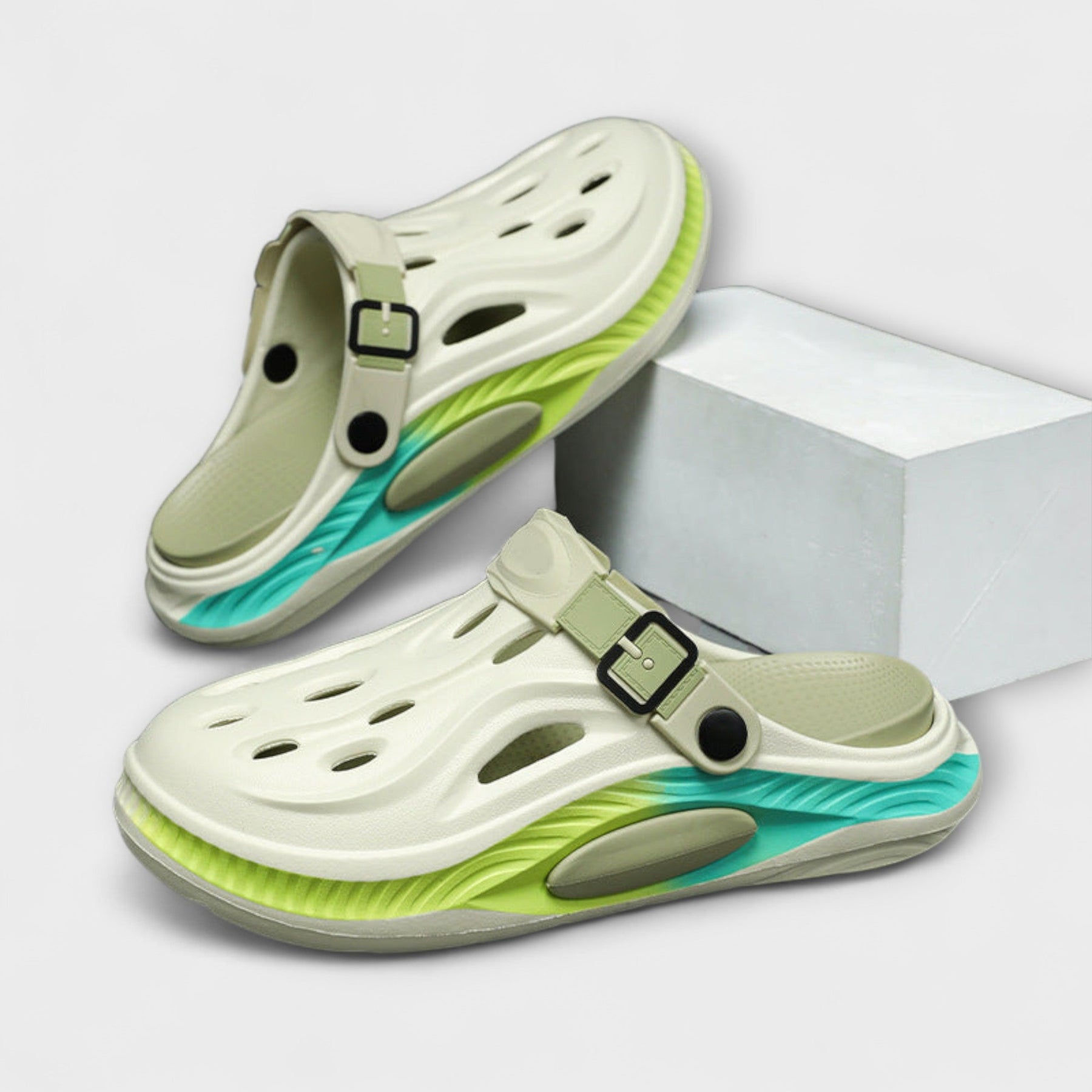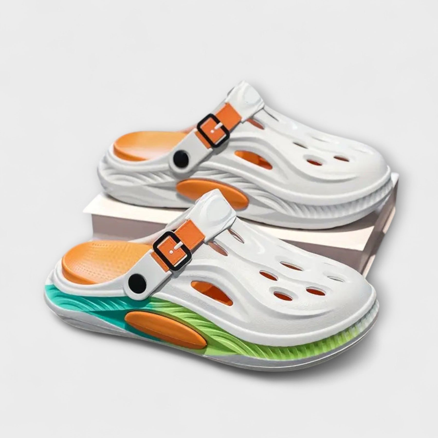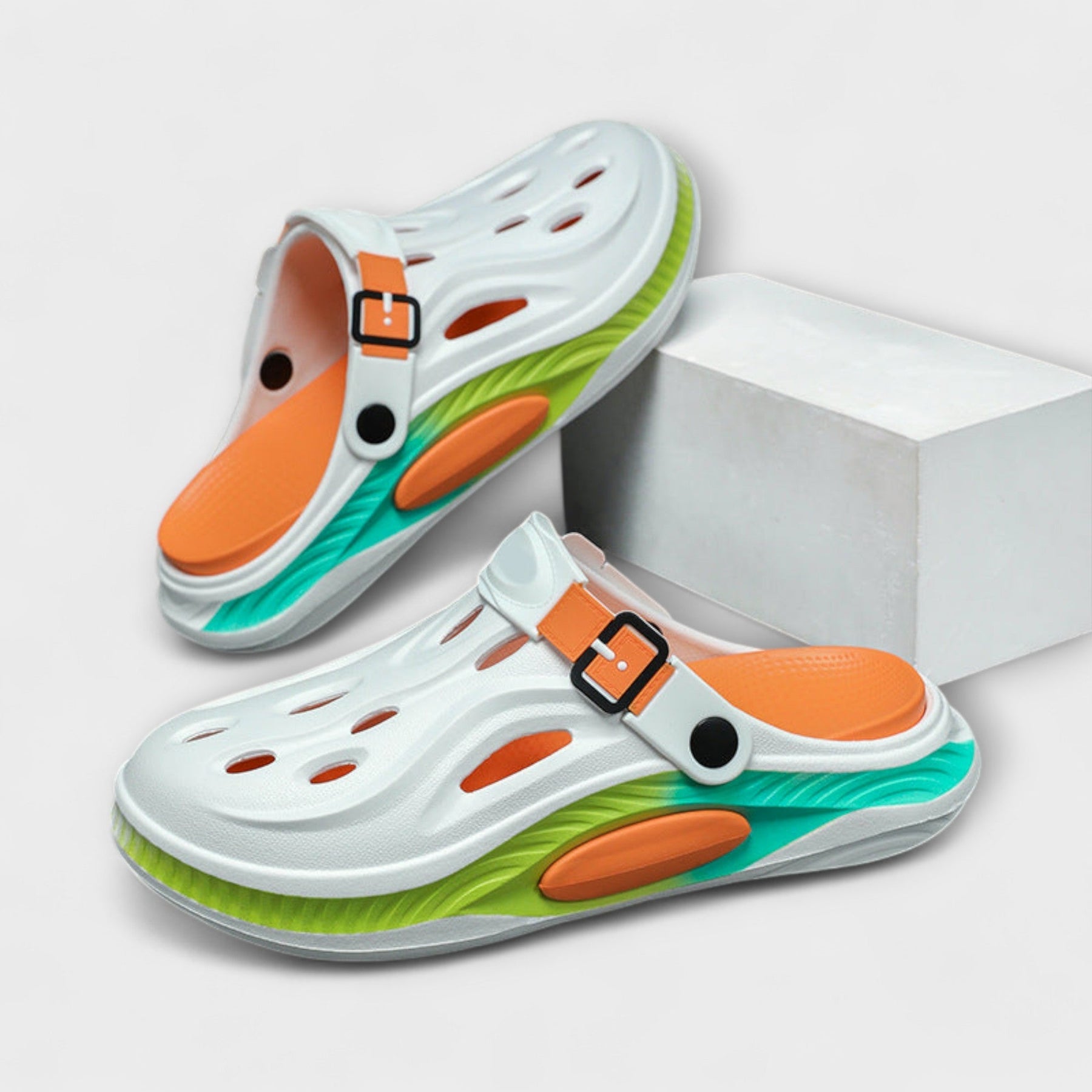 • Kräftige Farben, die auffallen: Erhältlich in lebhaften Farben, verleihen diese Schlappen jedem lässigen Outfit eine verspielte Energie.