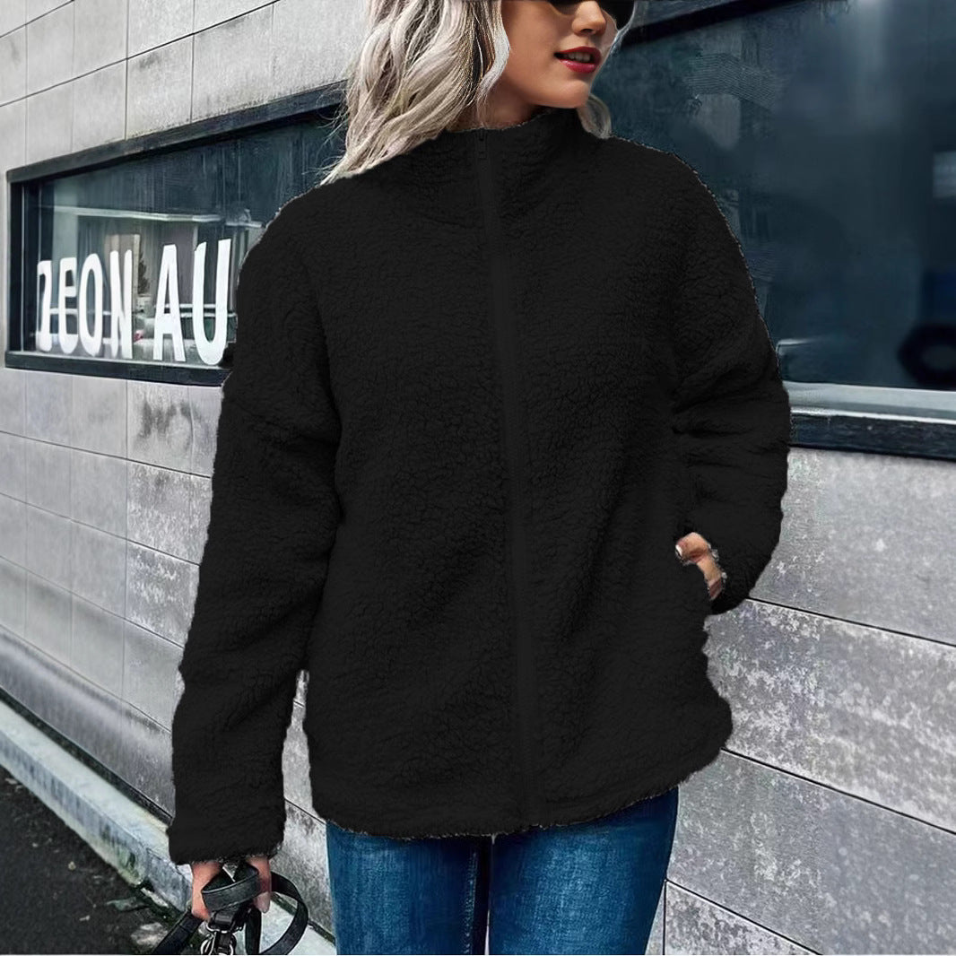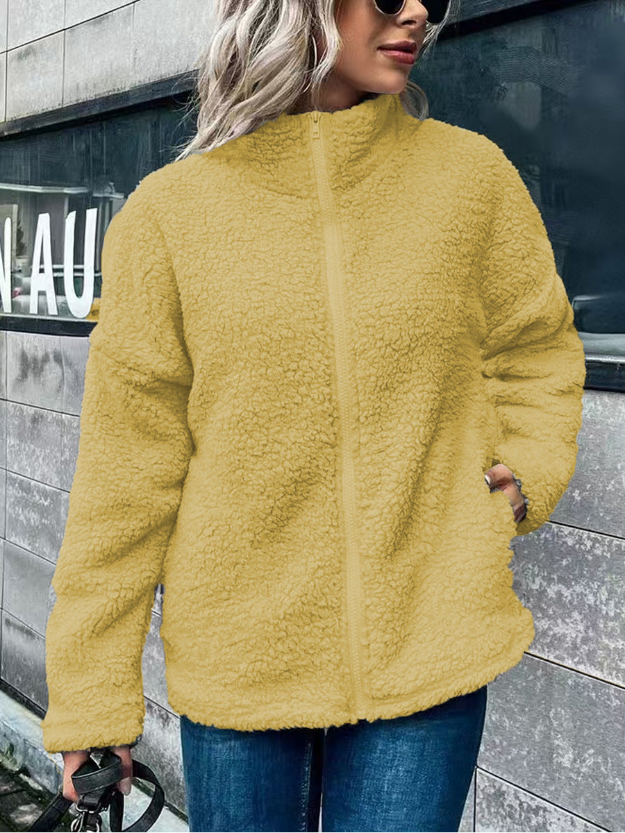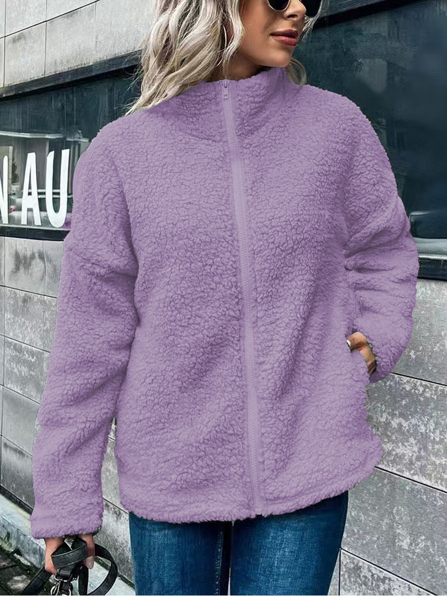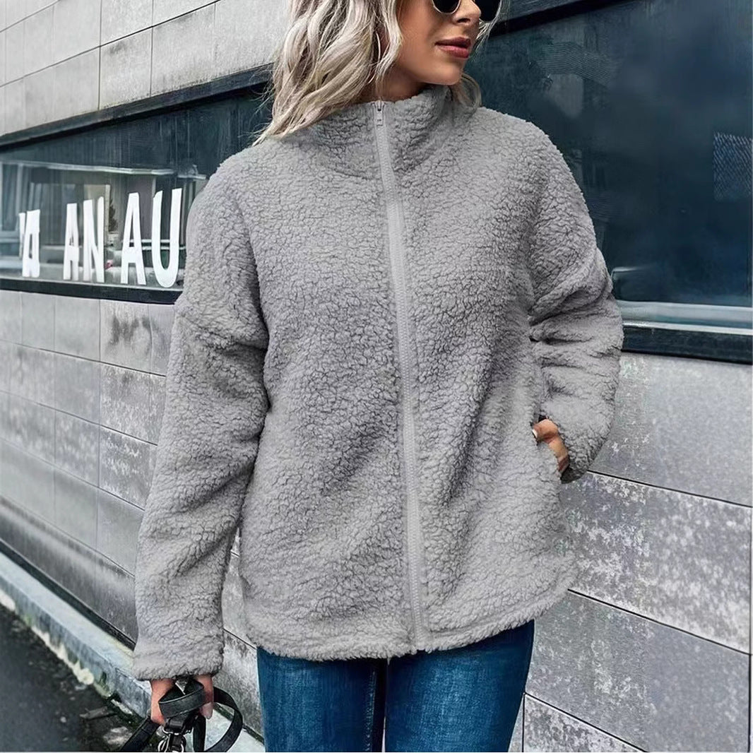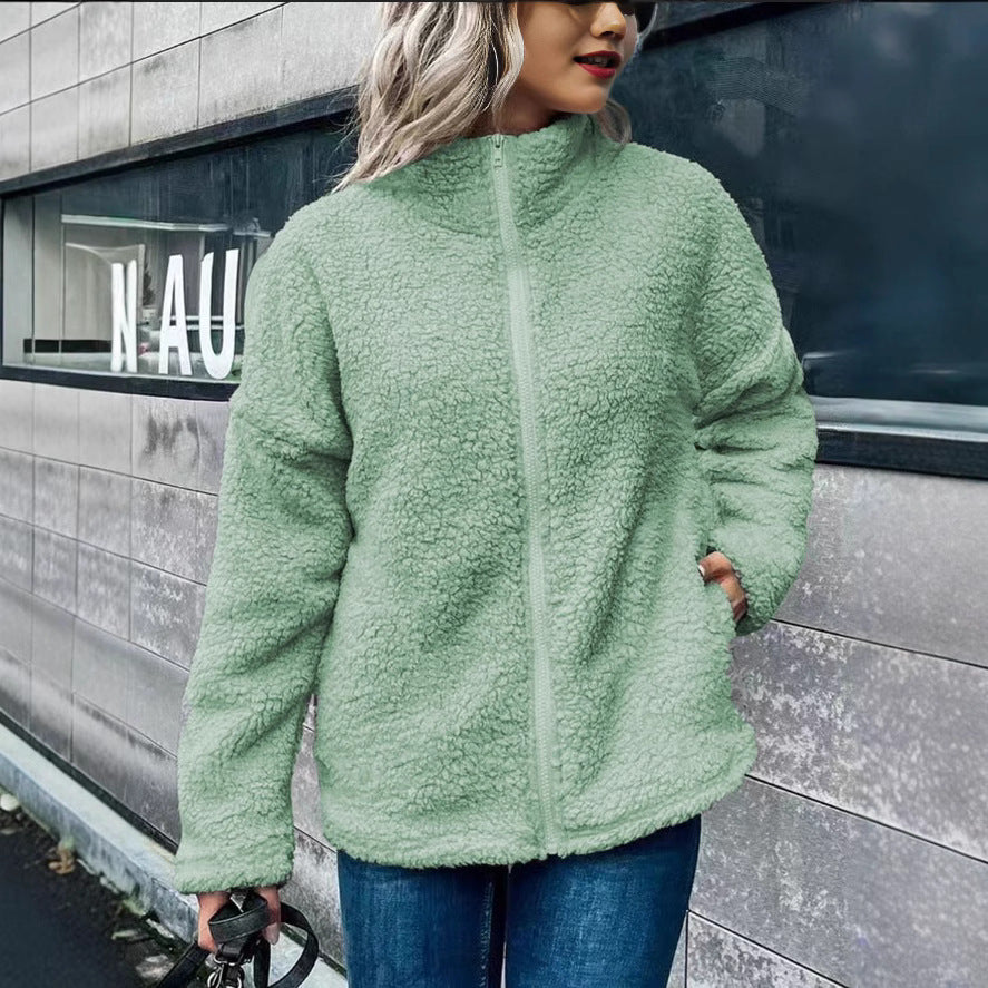 Damen Fleecejacke – Oversize-Schnitt – Stehkragen – Reißverschluss