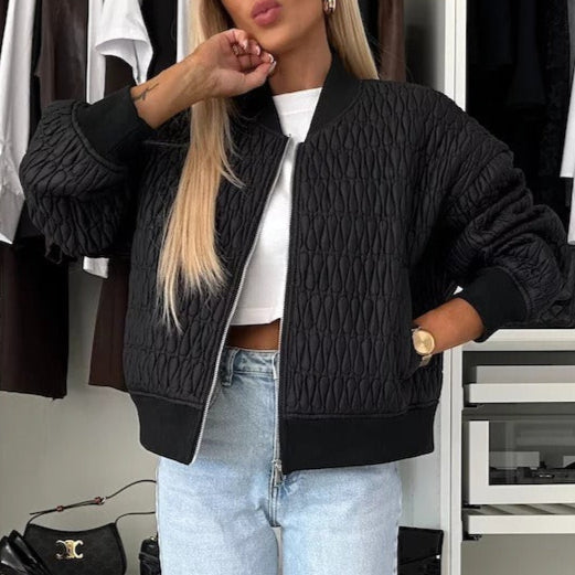 Damen Steppjacke – Kurze Passform – Oversize-Look – Mit Reißverschluss und Bomberkragen