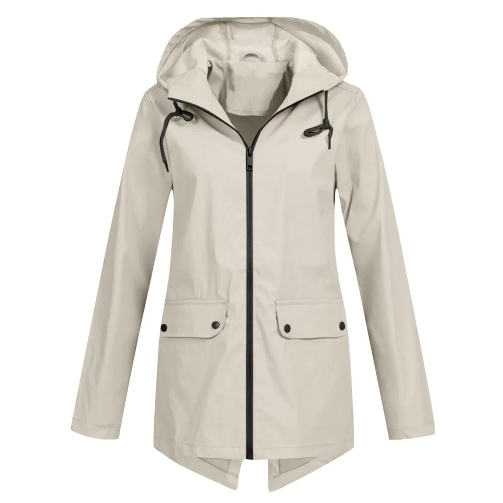 Damen Windjacke – Lässiger Schnitt – Verstellbare Kapuze – Leichte wasserdichte Jacke