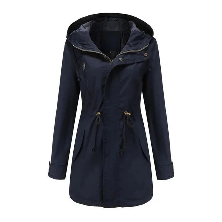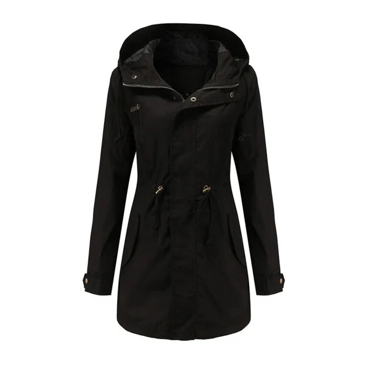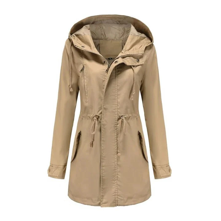 Damen Windjacke – Taillierte Passform – Verstellbare Taille – Kapuze – Hüftlange