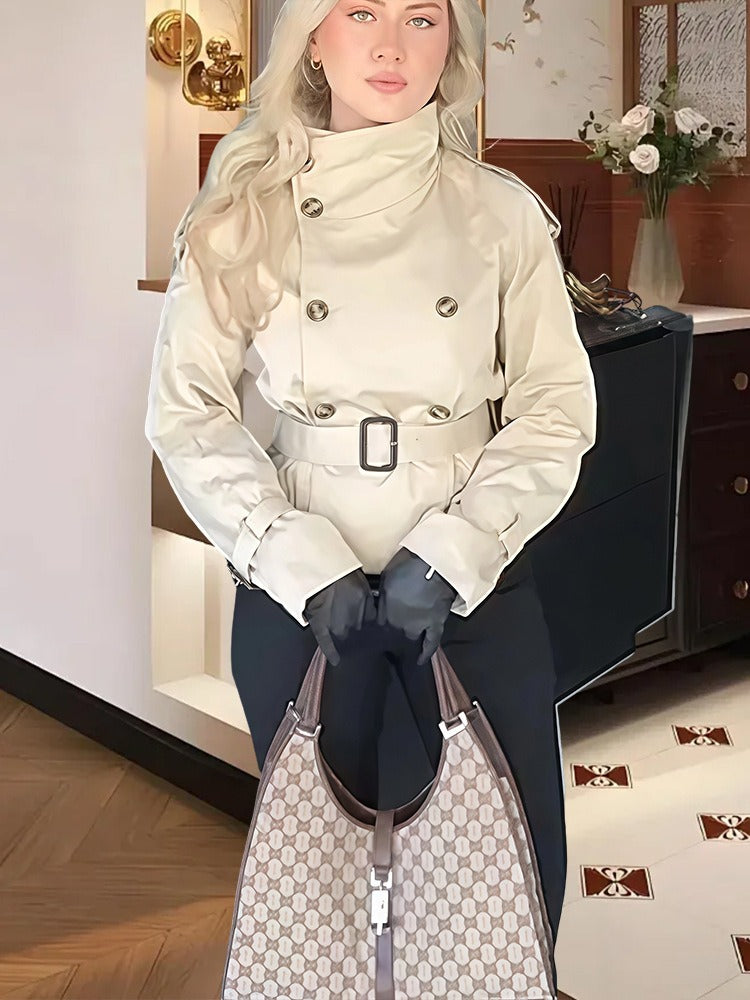Damenmantel – Taillierter Schnitt – Stehkragen – Schlagärmel – Verstellbarer Gürtel