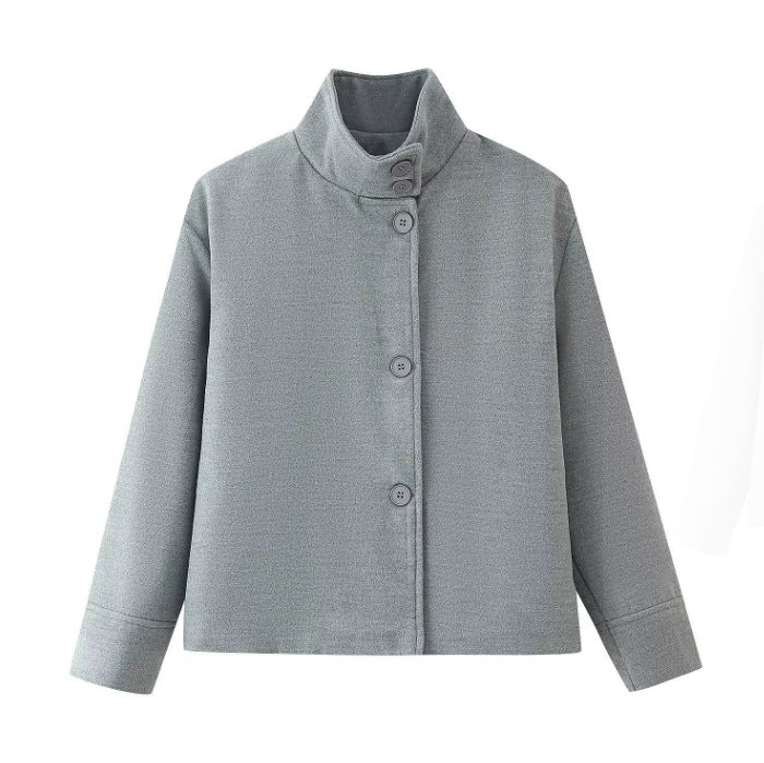 Elegante Knopfjacke mit Stehkragen für Frauen – Lässiger Chic