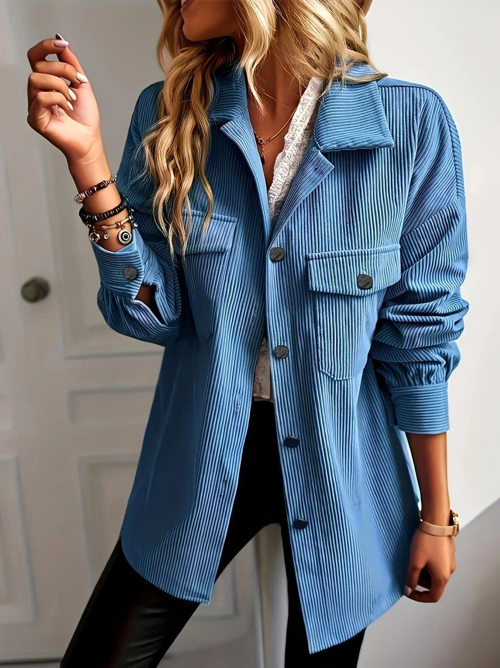 Lässige Damenjacke – Weite Passform – Schalkragen – Rippstruktur – Klappentaschen
